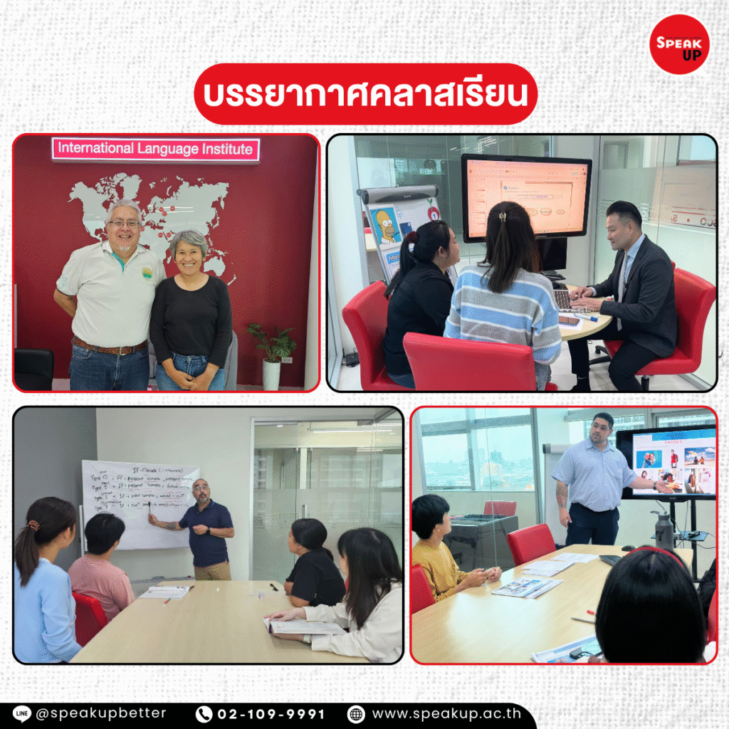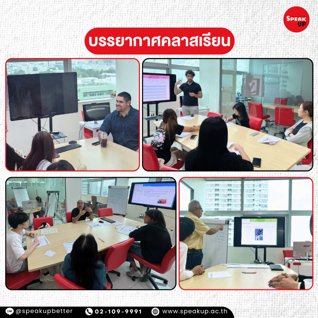 ที่ Speak Up เราออกแบบคลาสเรียนภาษาอังกฤษแบบ กลุ่มเล็ก (3–5 คน) เพื่อให้คุณ… ✅ กล้าพูดได้ โดยไม่ต้องกลัวว่าจะผิด ✅ ได้ฝึกจริงในสถานการณ์เหมือนชีวิตจริง ✅ ได้รับกำลังใจจากเพื่อนในคลาส ✅ เรียนกับครูเจ้าของภาษา ที่เข้าใจผู้เริ่มต้น ✅ เริ่มต้นอย่างมั่นใจ แม้ไม่มีพื้นฐาน ✨ เพราะความมั่นใจ เริ่มจาก “พื้นที่ที่ปลอดภัยในการฝึกฝน”